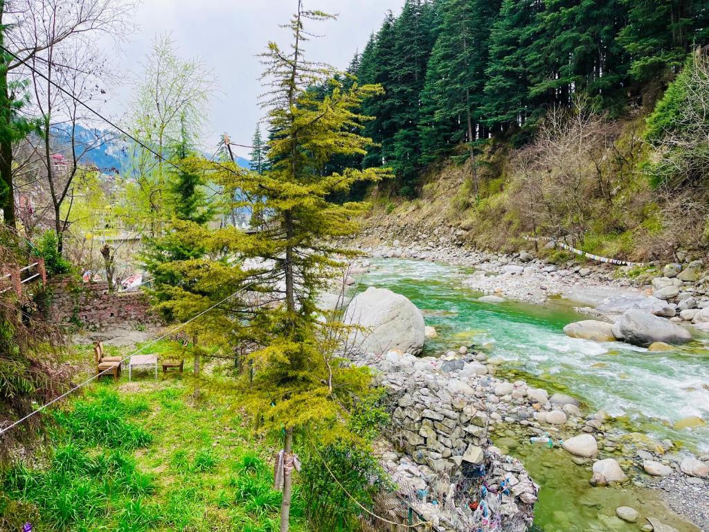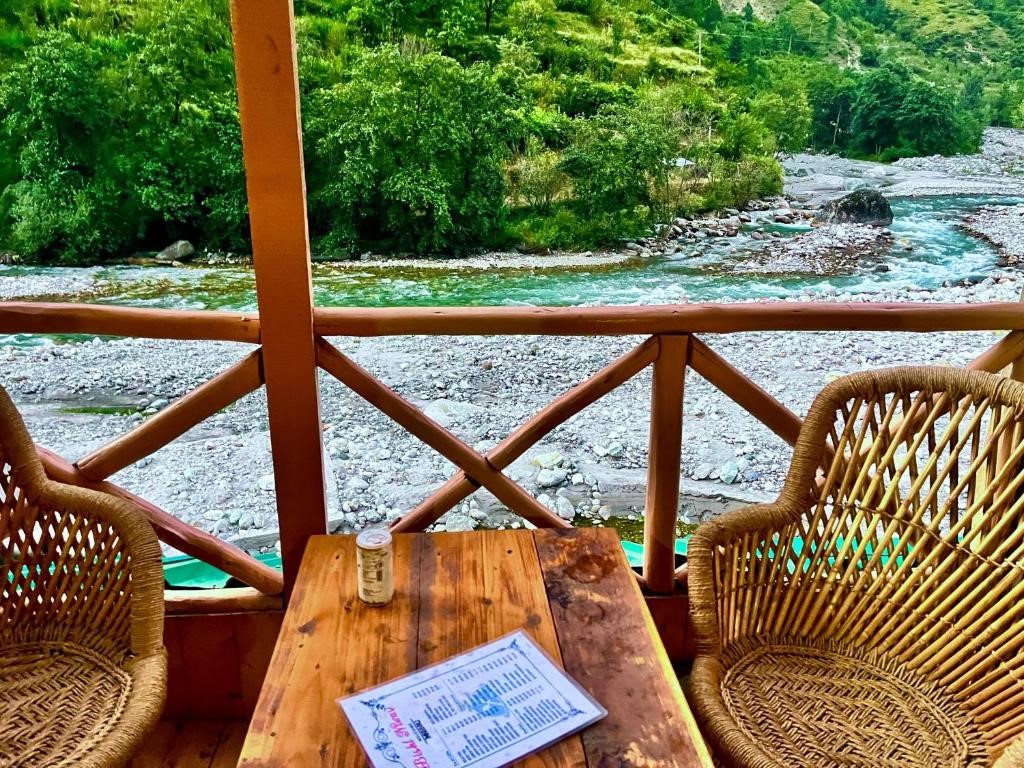 Wake up to the soothing hush of the mesmerizing Tirthan river and panoramic mountain range views at our riverside stay in Nagini, Tirthan Valley - where rural wooden interiors and comfortable surroundings with nature for a rejuvenating escape in the hills.